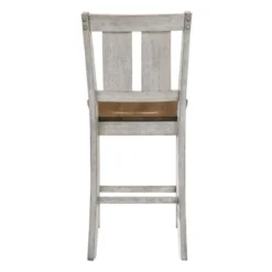 Trestle details and a charming antique white finish emphasize the rustic ambiance of this five-piece counter height dining table set. Light oak finish contoured seats and tabletop add richness and contrast for added character in your kitchen or dining room. This eco-friendly frame is constructed from rubberwood, a tropical, solid wood taken from rubber plantations.