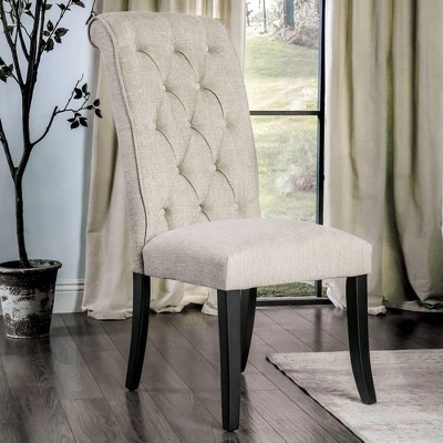 Suitable for many different types of decor, this seven-piece dining set is crafted for comfort and plenty of versatility for your dining space. A brushed black table crafted from solid wood boats an eye-catching X-style base, providing stability and support. Six side chairs come with matching brushed black legs and upholstered seating, complete with button tufting and an elegant silhouette with tan upholstery. Made from rubberwood, durable solid wood sourced from rubber plantations. After the sapwood is tapped for latex, the workable timber is harvested for furniture.