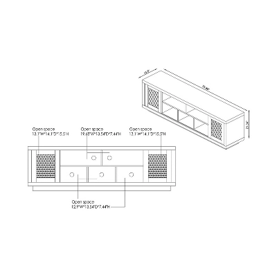 The sliding mesh doors of the Homes: Inside + Out Valla Industrial 70″ Tv Stand in Black by HOMES: Inside + Out allow a convenient and personalized option you will fall in love with and find handy in an entertaining space. Choose between the open shelving or large open compartments and experience the ample storage space this piece will bring to a space. The distressed cement-like frame is paired with solid finished panels to balance the rustic, modern design.