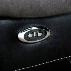 A perfect blend of style and relaxed comfort, this transitional L-shaped sectional is ideal for a family room. Its large frame includes two recliners, with one flanked by a storage console with included cupholders. Its stylish upholstery is crafted in fabric-like vinyl and features a two-tone combination of stone gray and sleek black. Contrast stitching adds detail while ultra-plush pillowtop arms and tufted back cushions complete the look.